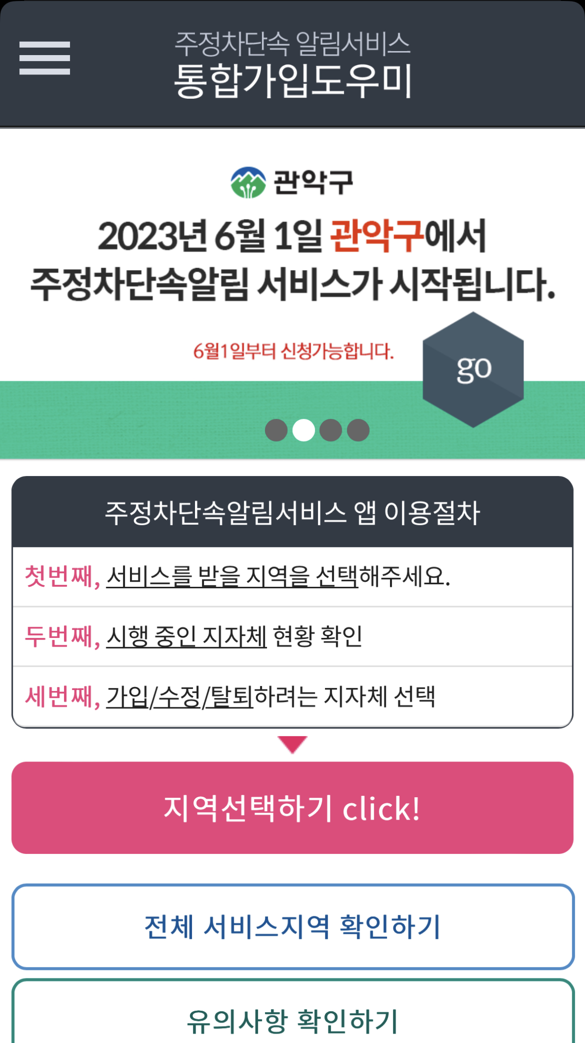 지금까지 주정차 단속 문자 알림 서비스를 신청하는 방법에 대해서 알아보았습니다. 위 방법대로 딱 한 번만 신청하면 앞으로 계속해서 알림 서비스를 받을 수 있게 되며 주의할 점은 각 지자체 별로 하나씩 등록을 해야 합니다.