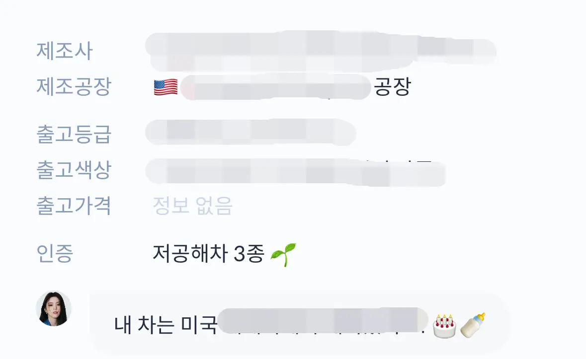 해당 차량의 정보를 안내해 줍니다. 생각보다 자세하게 알려주고 있습니다.