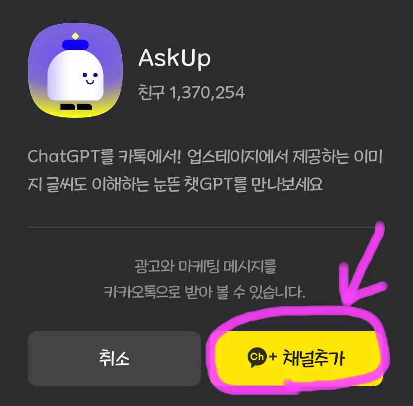 새로운 친구 항목에 등록 완료된 것을 볼 수 있습니다. 이제 Askup과 대화하기를 해보도록 하겠습니다.